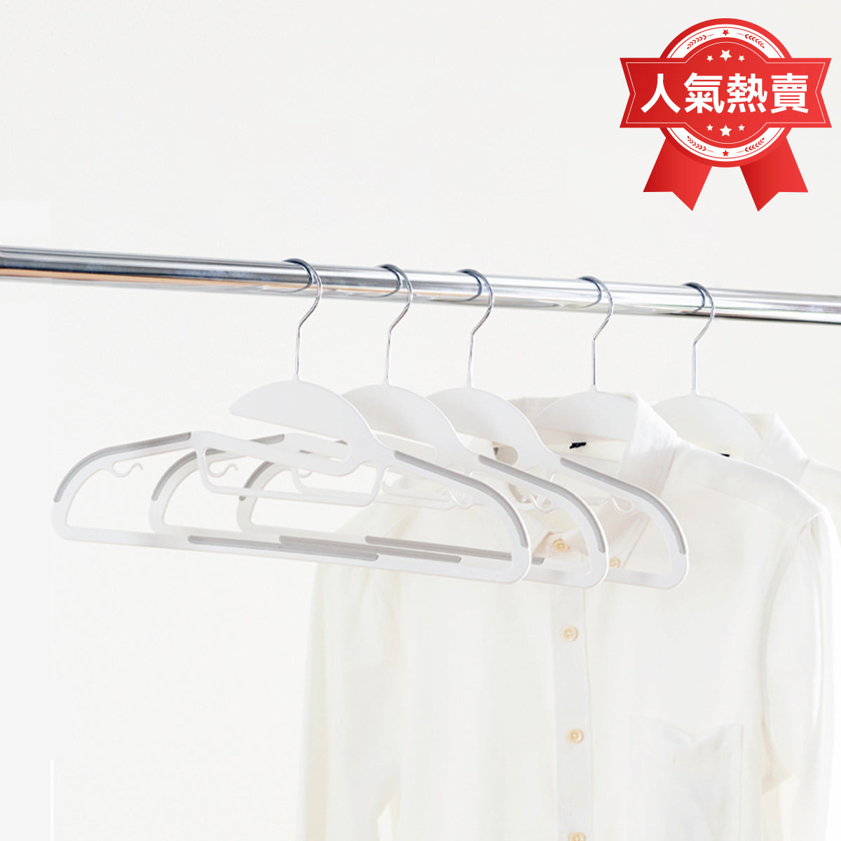 Increase quantity for 【家居】塑膠防滑衣架 伊漢 米白 5支裝