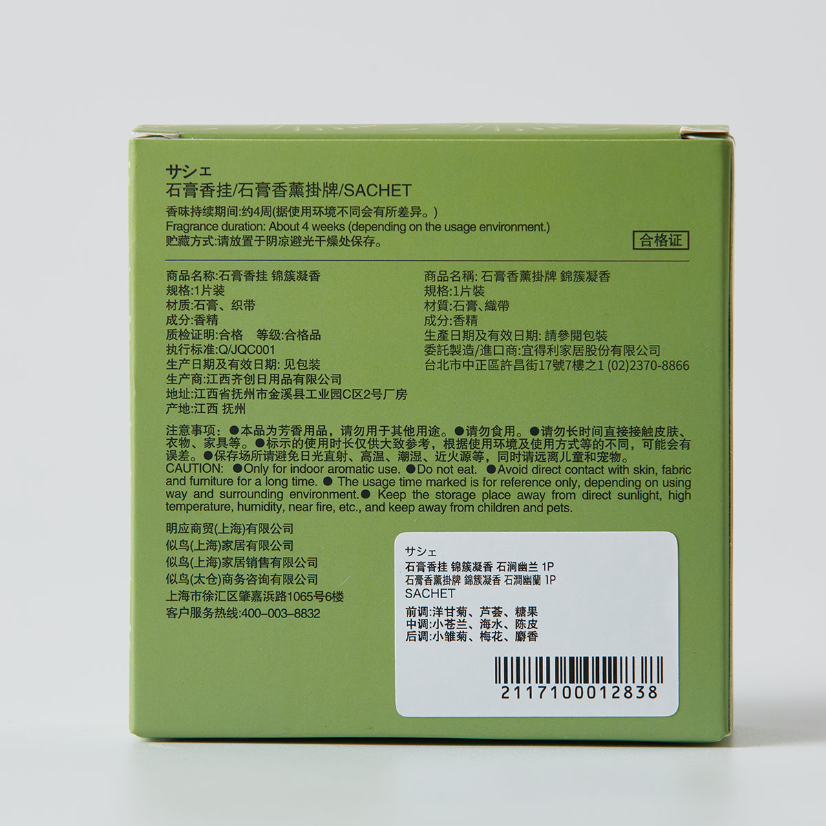 前調:白檸檬、橘子、香檸檬 中調:羅勒、百里香、鳶尾花、紫丁香 後調:香根草、廣藿香 香味持續期間:約4周(據使用環境不同會有所差異) |